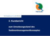 Mit dem 2. Kurzbericht zum Umsetzungsstand des Sedimentmanagementkonzeptes (SeMK) werden die Fortschritte bei der Umsetzung der Maßnahmen gegenüber dem ersten Bericht aufgezeigt, zugleich aber auch nach wie vor besteh ...